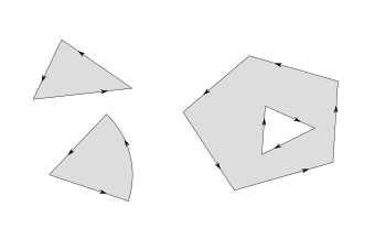 状況によっては複数の区分的 $C^{1}$ 級曲線の和を積分経路として考えたい場合があり典型的なのが、積分経路が多角形や扇形の境界である場合に角で切って線分や弧に分割することです。、その場合の表記として、区分的 $C^{1}$ 級曲線 $c_{1}, c_{2}, \dots, c_{n}$ たちの形式的な和 $\sum_{k = 1}^{n}c_{k} = c_{1} + c_{2} + \cdots + c_{n}$ に沿った複素線積分を\[\int_{\sum_{k = 1}^{n}c_{k}}f(z)dz := \sum_{k = 1}^{n}\int_{c_{k}}f(z)dz\]と定めます。さらには曲線ごとに整数の重み $m_{1}, m_{2}, \dots, m_{n}$ をつけて\[\int_{\sum_{k = 1}^{n}m_{k}c_{k}}f(z)dz = \sum_{k = 1}^{n}m_{k}\int_{c_{k}}f(z)dz\]と定めます。